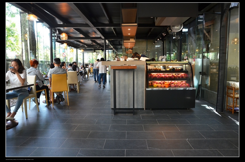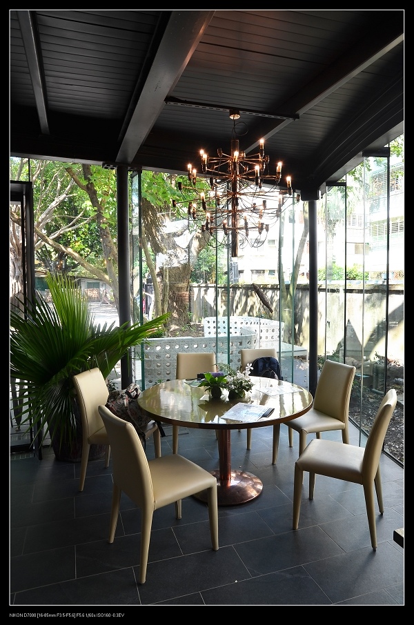 一進餐廳,整個玻璃帷幕,可以欣賞外面的大樹及院子,非常現代感