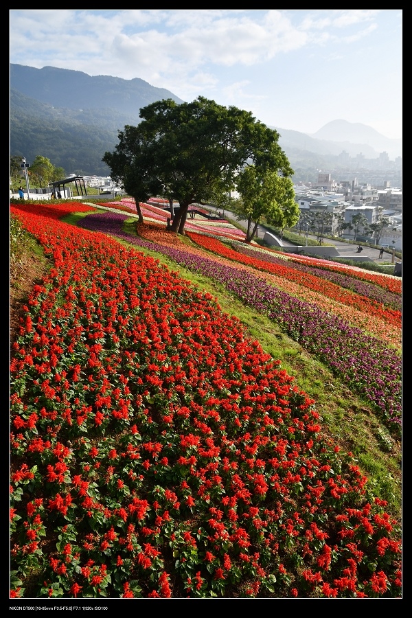 【北投社三層崎公園】花海又開始了,碩大面積的彩虹花海,交通方便.在台北市內搭公車就能到,今年花朵種得更密集,更有看頭了