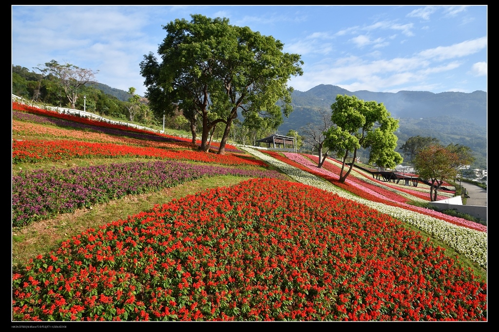 花海沿著山坡起伏,加上顏色鮮豔,看起來更有律動感