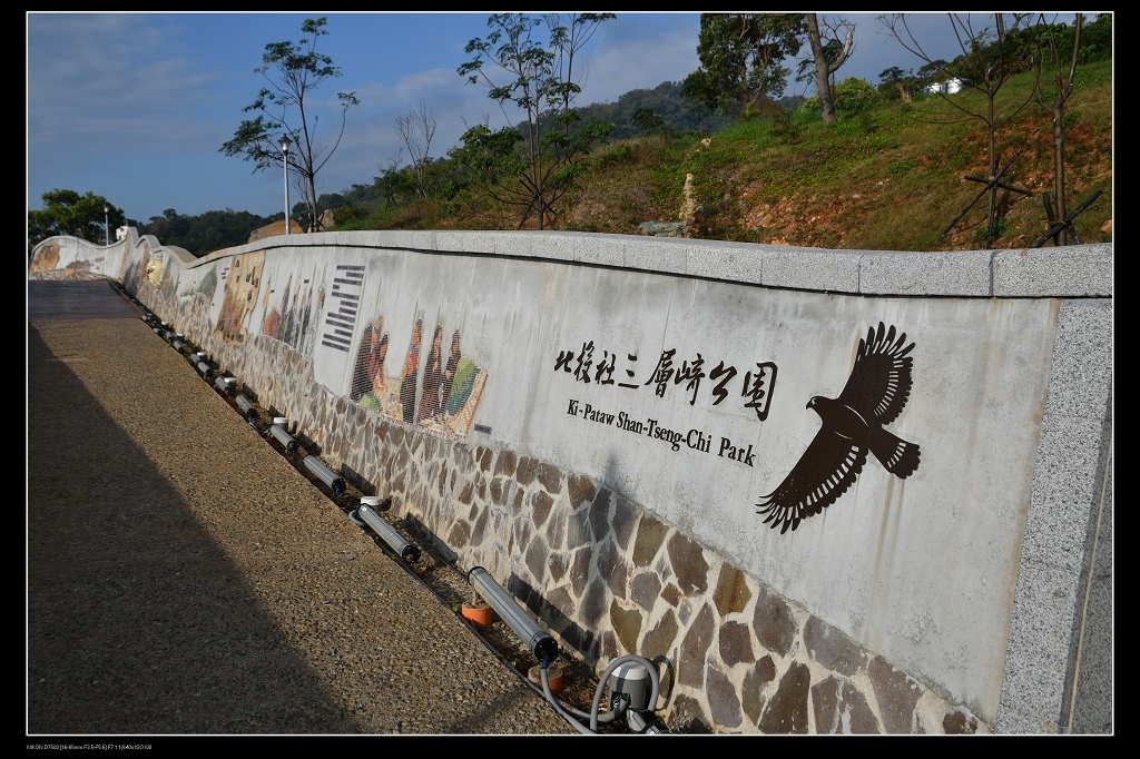 若搭公車在貴子坑水土保持園區站下車,抬頭就可看到北投社三層崎公園的大招牌,從這旁邊樓梯也可直接上到公園