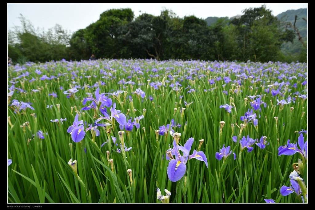 一大片鳶尾花田,四周都有田埂可以走到,只是路很小,要小心別踩進田裡