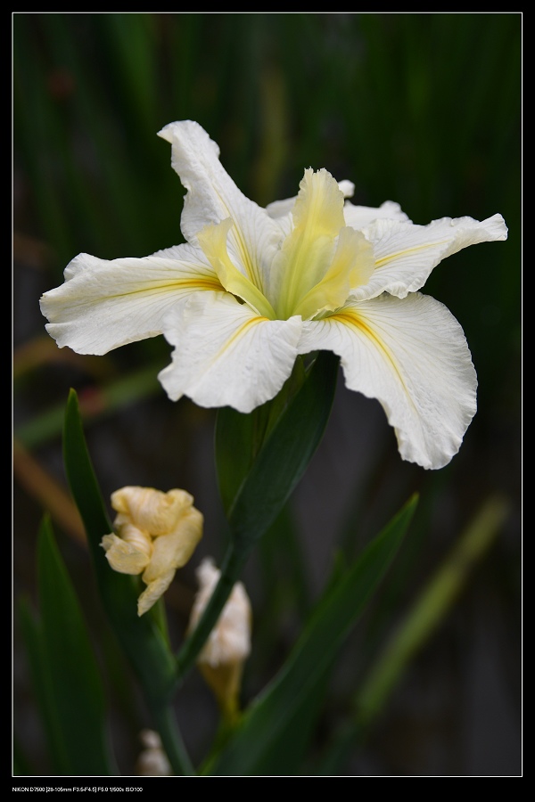 白色鳶尾花因光線對比較強烈,所以背景會較暗