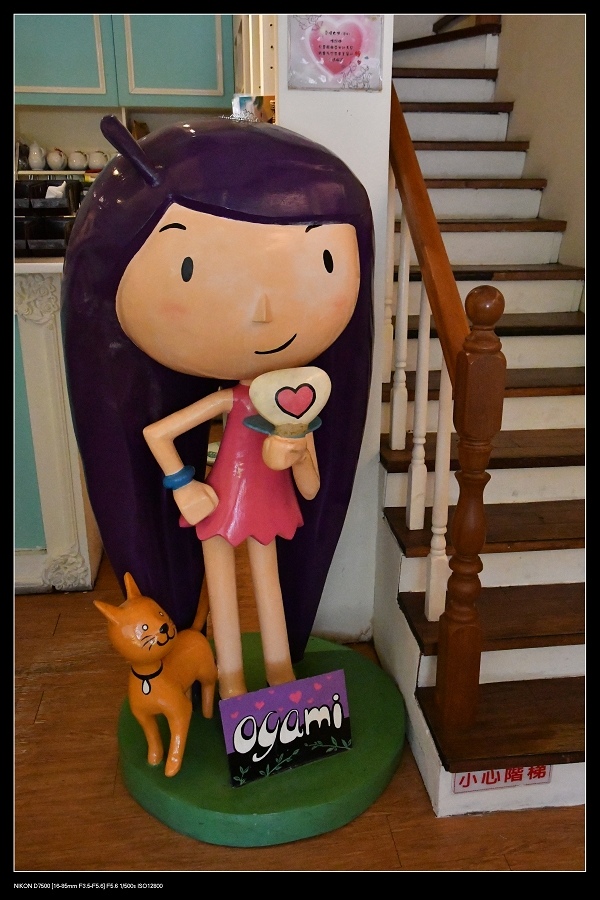 這幾乎一個小朋友高度的人偶,在往二樓的樓梯口跟客人打招呼
