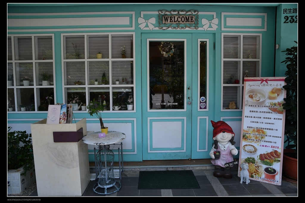 Oyami Cafe在板橋新埔站四號出口附近,這歐風Tiffany藍大門就給人很夢幻的感覺
