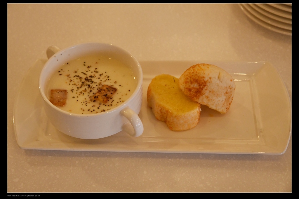 因為是中午,前菜是玉米濃湯及奶油麵包