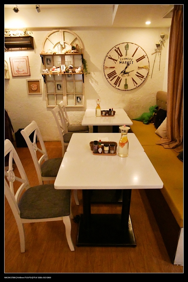 窗型的小櫥櫃加上有形的大鍾.加上白色基調,很適合在此打卡拍照