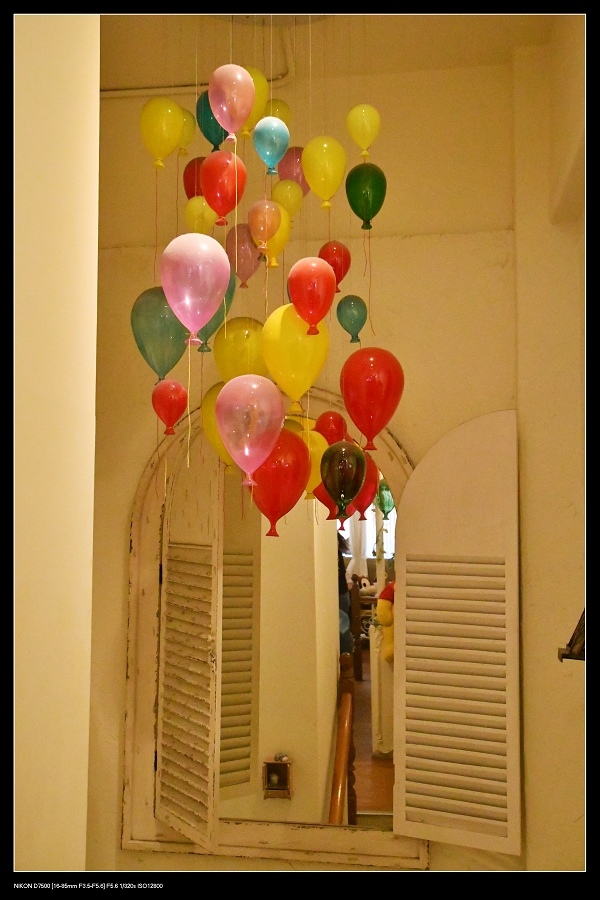 樓梯上也很有巧思,上頭掛滿彩色氣球