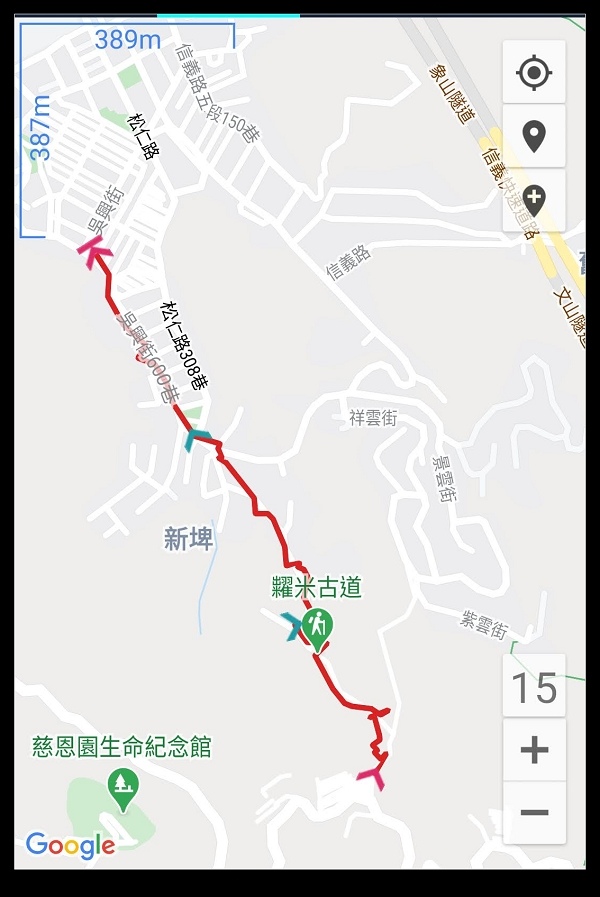 終點是走到崇德路口,後續可接著走茶路古道,因這一段是台北市最大公墓區,就沿路折返了