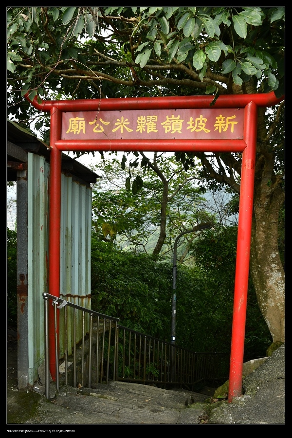 新坡嶺糶米公廟山門,這裡有詳細紀錄這條古道的歷史及發展