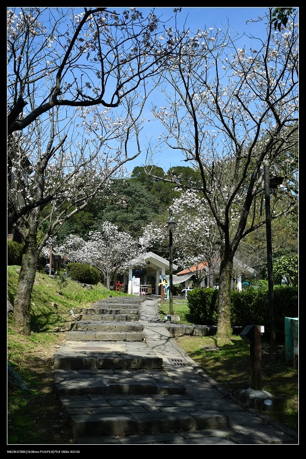 剛踏進這條吉野櫻石階步道,兩旁樹木夾道,若再一兩周,應該會花朵成蔭