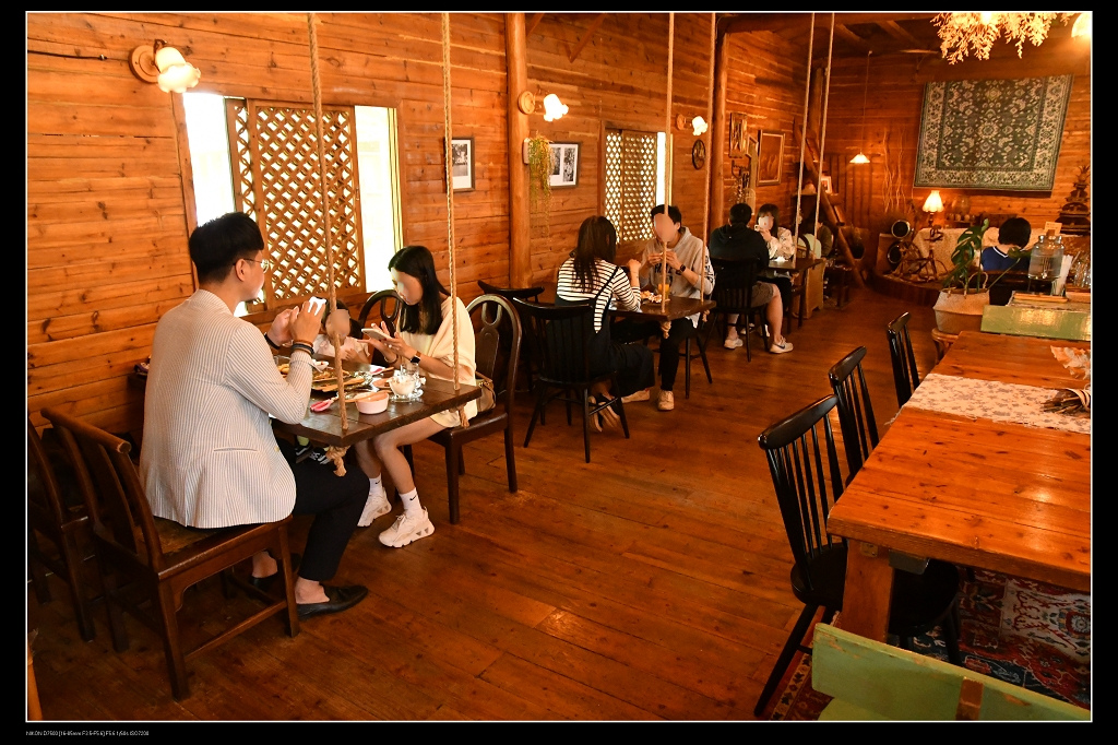 餐廳入口這面牆上都是農家老古董,但布置得也很有味道