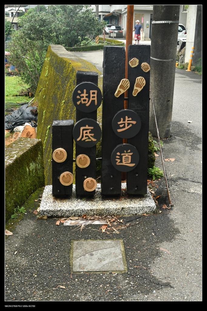 沿步道往上會再切到湖底路上,看到這個王府大宅的門旁,就是湖山國小步道的入口