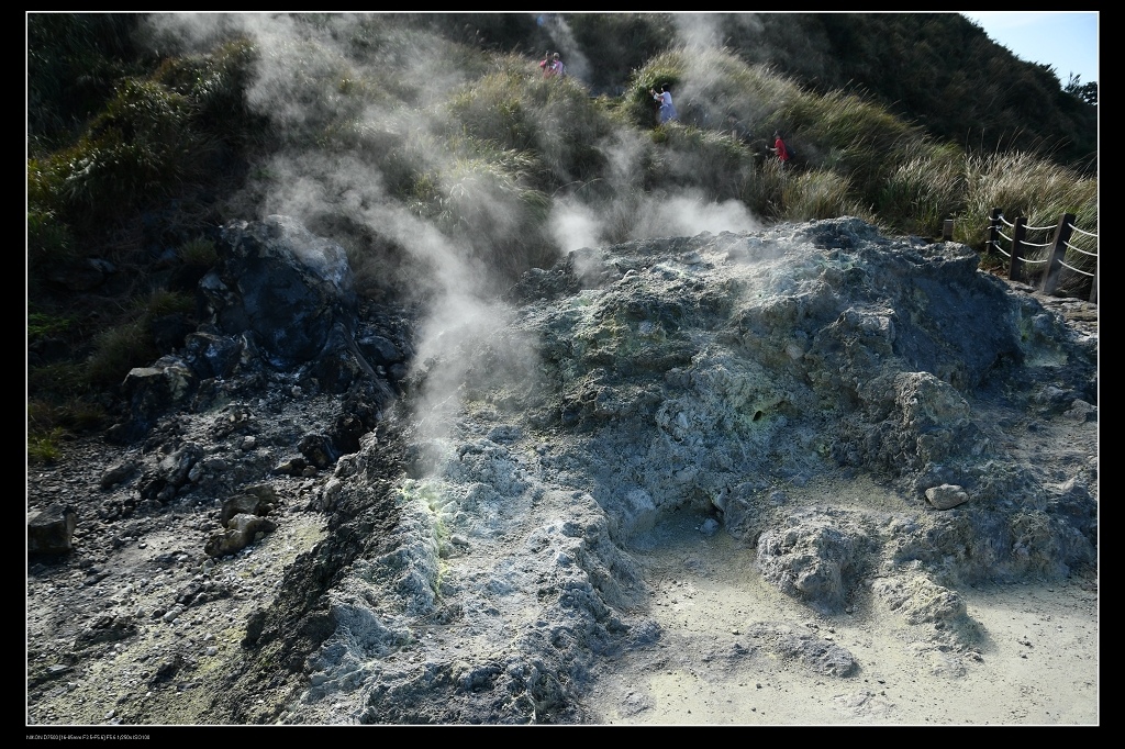 這條登山步道上有很多地熱口,不時冒出白煙,岩石上也佈滿硫磺