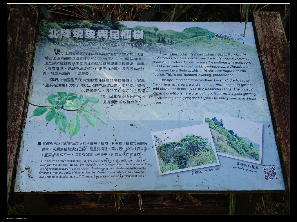走道1.3K左右,會看到北降現象與昆欄樹的解說牌