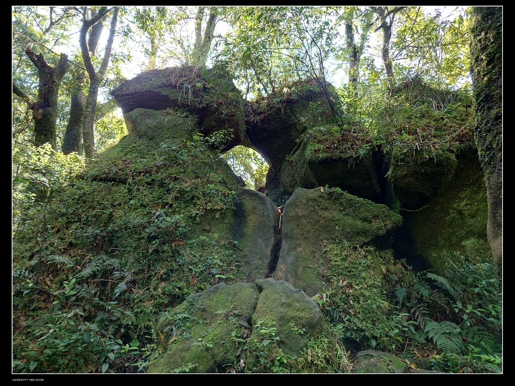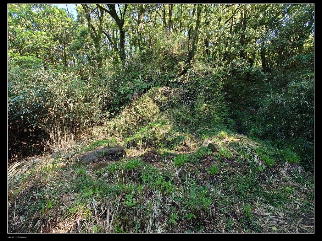 繼續往前走,會看到一片空地,叫做月形池,據說是凱達格蘭族的祭天壇,祭天壇,是由六大塊石塊堆積而成,前方有三塊石碑,還有月牙塘,面向七星錐,這裡的地面是中空的,重踩會有砰砰的聲響