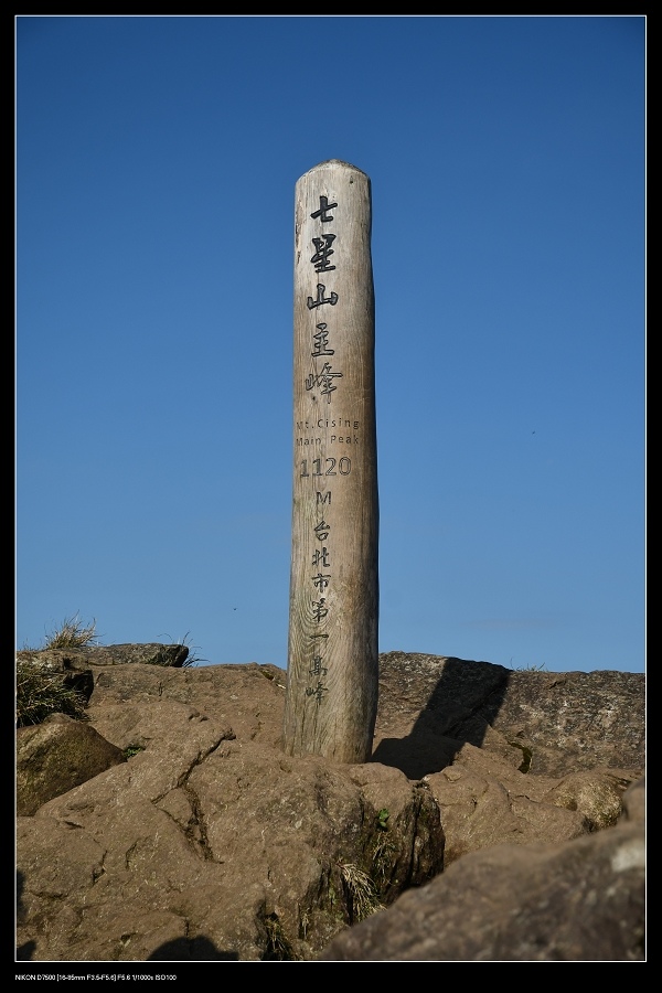 凱達格蘭山七星錐山頂空間不大,只能免強站兩三的人,位置在七星山主峰與南峰與東峰交界處,海拔1040公尺