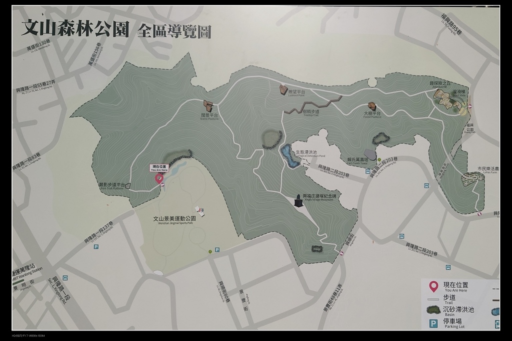 文山森林公園占地11公頃,可串聯文山景美運動公園,步道全長1.5公里,中間有許多景點可觀賞,