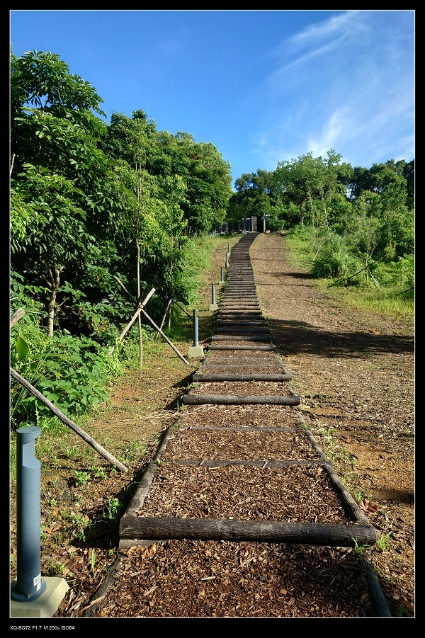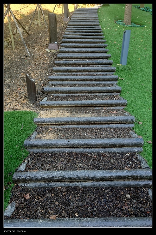 從趣探險之丘左邊有一條階梯,除了可以上去溜滑梯外,也是往景美運動公園的步道