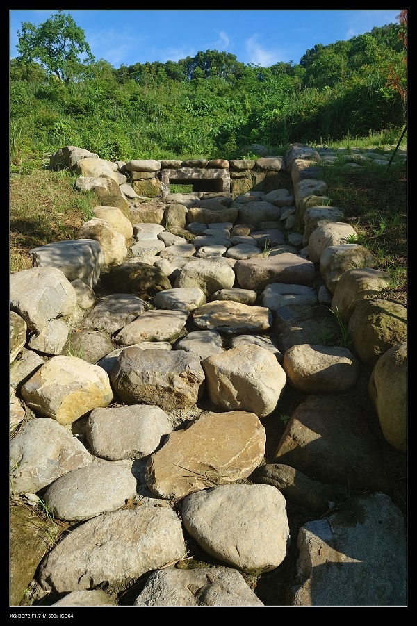 生態滯洪池的溢洪道,看起來應該是剛建好不久