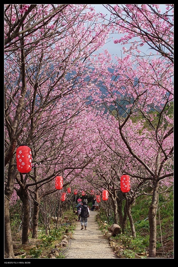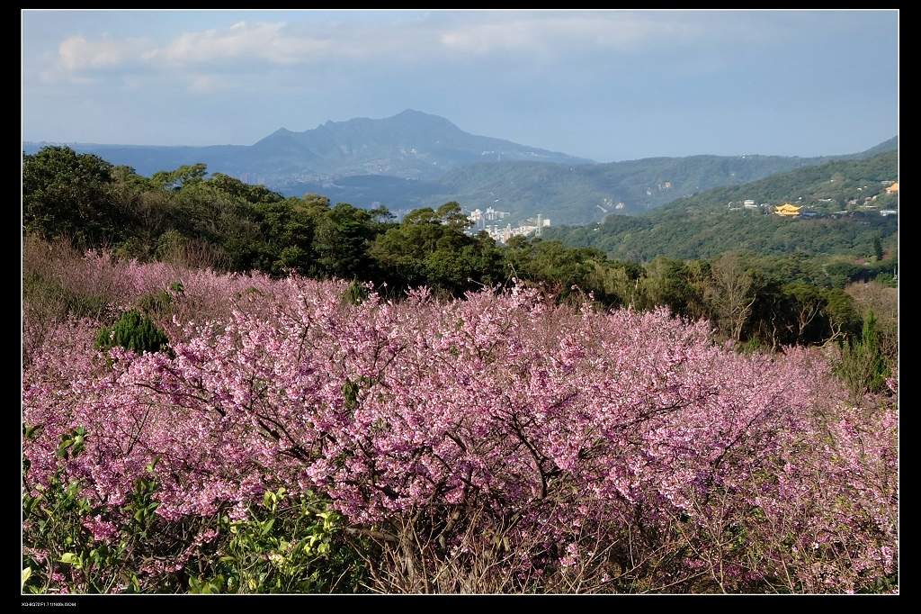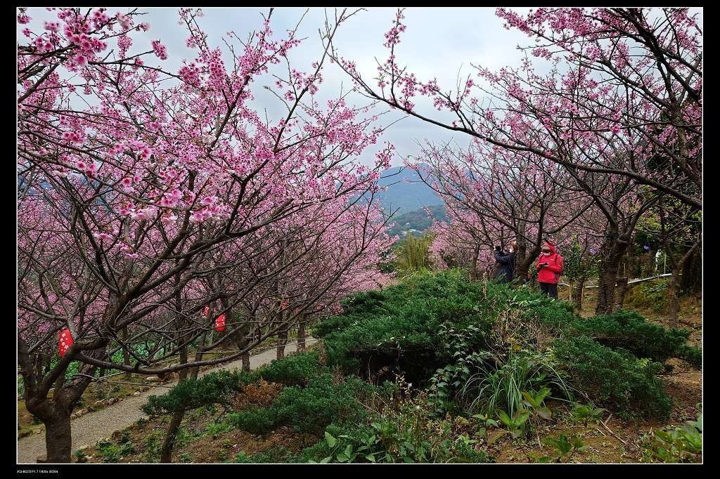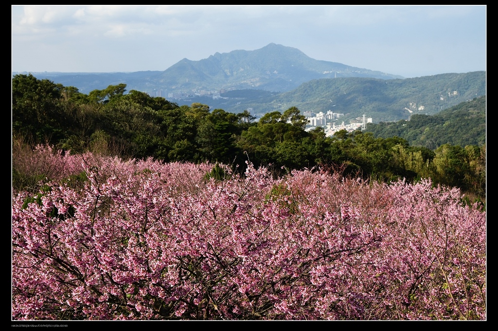 大埔農場紗帽山是一座私人農園,種植了二千多株櫻花,一片花海襯托遠處觀音山,絕對比平菁街滿滿人潮有看頭