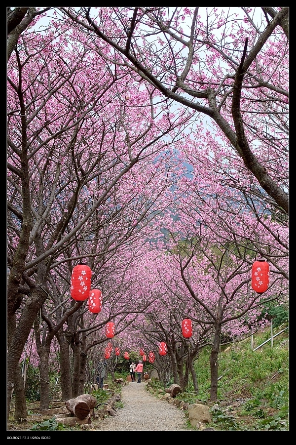 滿天蔽日的櫻花,加上燈籠點綴,讓這片櫻花隧道更顯得迷人