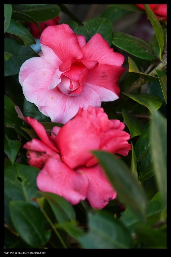 老闆很自豪的雙色茶花,一朵花上同時有兩種顏色