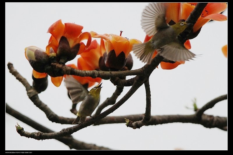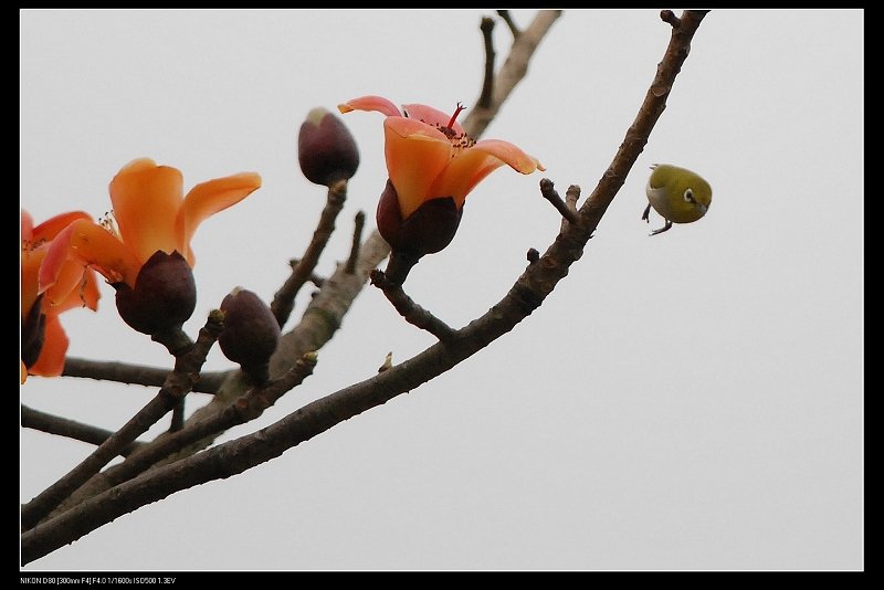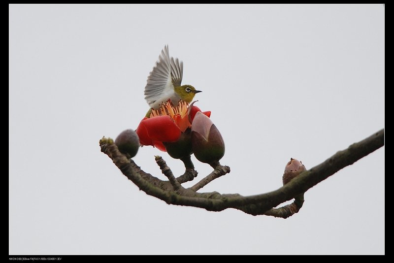 木棉花四處盛開,除了讓人一飽眼福,也讓綠繡眼一飽口福